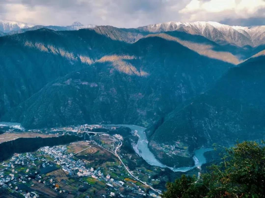 山路一轉,公路掙脫回環(huán)曲折,視線忽然變得開闊,仿佛突破了時空,一頭扎進了世外仙境。只見四面環(huán)山,一面向江,西高東低的山坡成片的農田,黑頂白墻泥屋悠閑地筑在田間,放眼往更高處眺望,遙遠的青巒雪山映襯著藍天白云。這就是世外桃源丙中洛,人神共居的天堂。