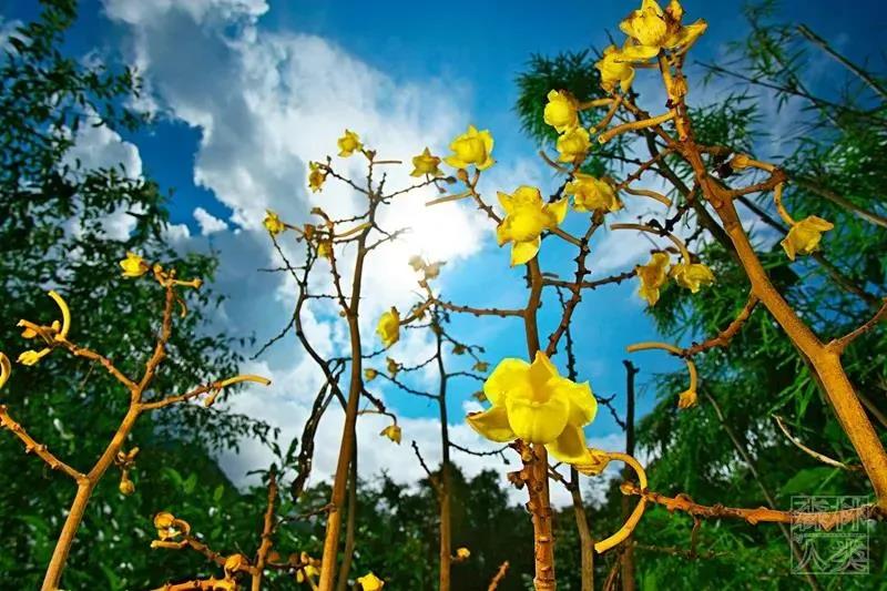 毛萼山珊瑚是一種奇特的蘭花,高達2米,沒有一片葉子,開滿黃色的花。
