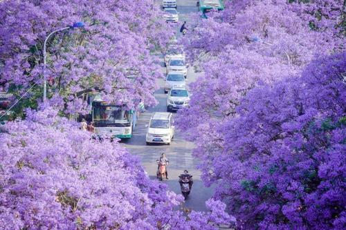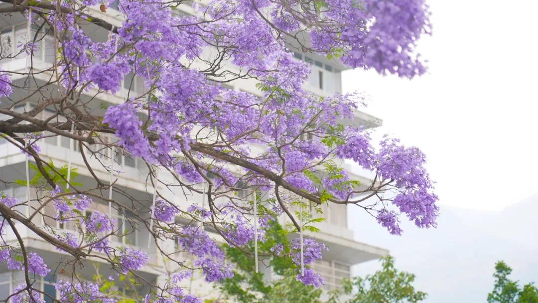 藍(lán)花楹以沉靜之色,讓人念念不忘,綻放的藍(lán)花楹,像悄然探出頭去的小精靈。