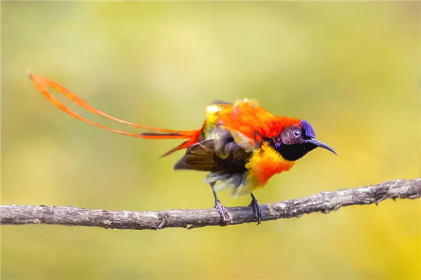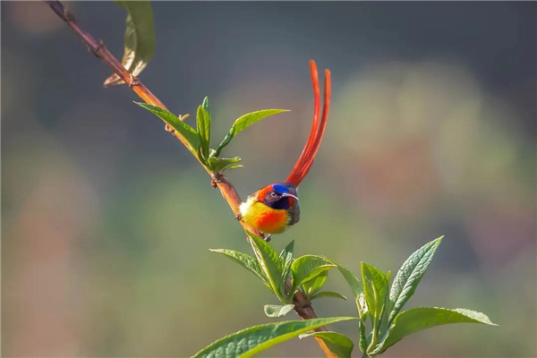 火尾太陽鳥小巧玲瓏,飄逸的紅尾修長靈動。