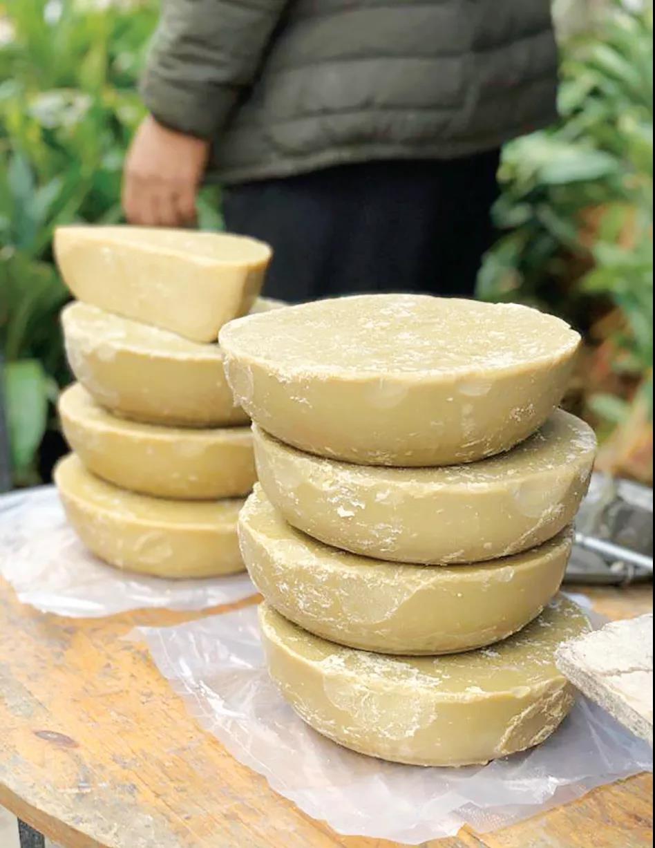 漆油在傈僳族語言里叫做“雞翅”,怒江傈僳族自治州的福貢、貢山、瀘水和蘭坪縣都盛產(chǎn)漆油,其中以福貢縣為最多, 是從怒江峽谷里特有的野生漆樹上的漆籽榨出的油。漆油的用途很廣泛,具有較高的營養(yǎng)價值,是怒江峽谷里少數(shù)民族家庭里的必備物品。