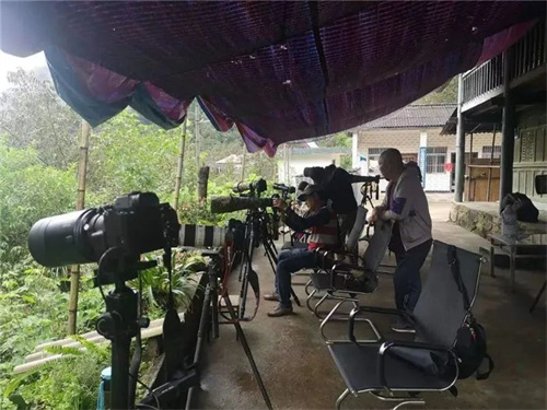 說干就干,張朝江開始在三河村蹲點,早觀察、午投食、晚監(jiān)測……在山上一住就是幾天。2018年1月1日,在袁開友的資助下和張朝江的日夜觀測選址后,三河村建起了2個觀鳥點作為試點。觀鳥點也被稱為鳥塘,搭建在鳥類棲息地的邊緣,經(jīng)過偽裝后很難被鳥發(fā)現(xiàn)。每個鳥塘設(shè)置8個機(jī)位,可以供鳥類研究者、攝影愛好者潛伏在偽裝棚內(nèi)觀察、拍攝。
