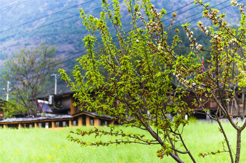 無(wú)非是一些低矮的木頭房子,遠(yuǎn)遠(yuǎn)看過(guò)去,一排排,一座座,散布在半山腰,在山腳,在草壩上,卻錯(cuò)落有致,跟山勢(shì),跟流水,跟野花,融于山水,融于自然,一起構(gòu)成一幅幅優(yōu)美的畫(huà)卷。