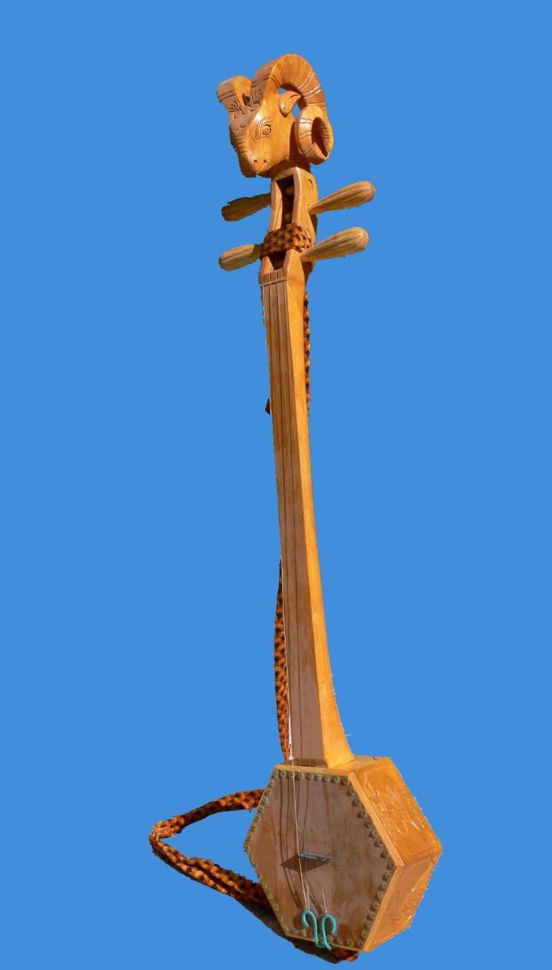 普米族傳統(tǒng)樂器“四弦琴”又被稱為“羊頭琴”,普米語稱為“比柏”。四弦琴演奏早期僅局限于傳統(tǒng)舞蹈《搓蹉》伴奏,現(xiàn)以演奏者的彈奏技藝任意演奏不受限制。四弦舞樂流傳于蘭坪縣境內(nèi)的普米族聚居區(qū)?!八南摇敝谱鳎核南仪僦谱鲿r長約一周,由琴桿、琴頭、琴耳、琴弦、琴馬、琴枕、琴箱(共鳴箱)組成,琴身多用核桃木、西南樺木、香樟木等制作;琴頭大多雕刻為羊頭型;琴弦用風(fēng)干后的羊小腸加工而成,現(xiàn)已改用金屬弦線,琴箱普遍為圓型或六角型,制作材料多為羊皮。“四弦”音色悅耳柔和、定弦多樣、旋律優(yōu)美、節(jié)奏明快、和音豐富,節(jié)奏富于變化。