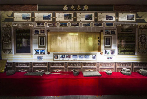 梧桐樹后是一起院落,雕花門窗,門首掛著木匾,上書“楊玉科將軍陳列室”,一對石獅子盤踞在門兩邊。進(jìn)入陳列室,迎面是楊玉科將軍坐像,楊將軍身穿官服,頂戴花翎,左手持一卷書。