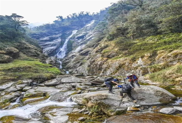 附近的山里有瀑布,依山勢(shì)分為兩股,因分別由一座高山的陰坡和陽(yáng)坡直落而下得名。兩條瀑布相距不到200米,越下懸崖后交融相擁,注入怒江。瀑布下的懸崖奇峰陡峭,四周是蔥綠的原始森林,古木參天。更神奇的是,不管季節(jié)如何變化,瀑布的水始終晶瑩透澈,這個(gè)時(shí)節(jié)進(jìn)入山里,會(huì)稍有涼意,最好是穿著保暖的沖鋒衣前去。