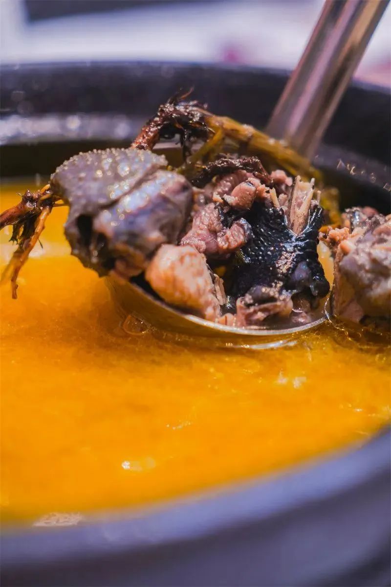 結束一天的行程,喝上一碗暖暖的熱湯,暖身又暖心。怒江特有的木楸雞、漆油雞、花椒雞,采用純天然食材燉煮,鮮香可口,再配一盤咸香的琵琶肉和在青石板上烤出來的石板粑粑,不僅滿足了口腹之欲,也撫慰了一身的疲憊。