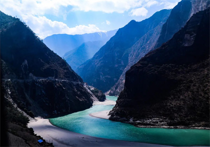繞在它們的頂端,給人一種夢幻般的感覺。峽谷中的怒江激流奔騰而過,水勢洶涌,發(fā)出震耳欲聾的聲音,讓你感受