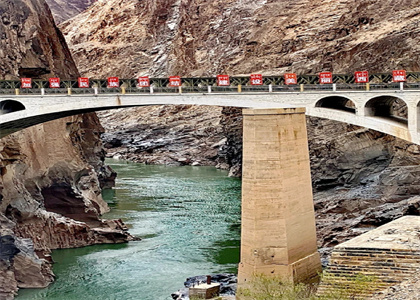 怒江大橋是川藏線的咽喉要道。 和平解放前,西藏全域120多萬(wàn)平方公里的大地上,沒(méi)有一條公路。擔(dān)負(fù)解放西藏重任的十八軍,同時(shí)擔(dān)負(fù)起了修筑進(jìn)藏公路的重任。