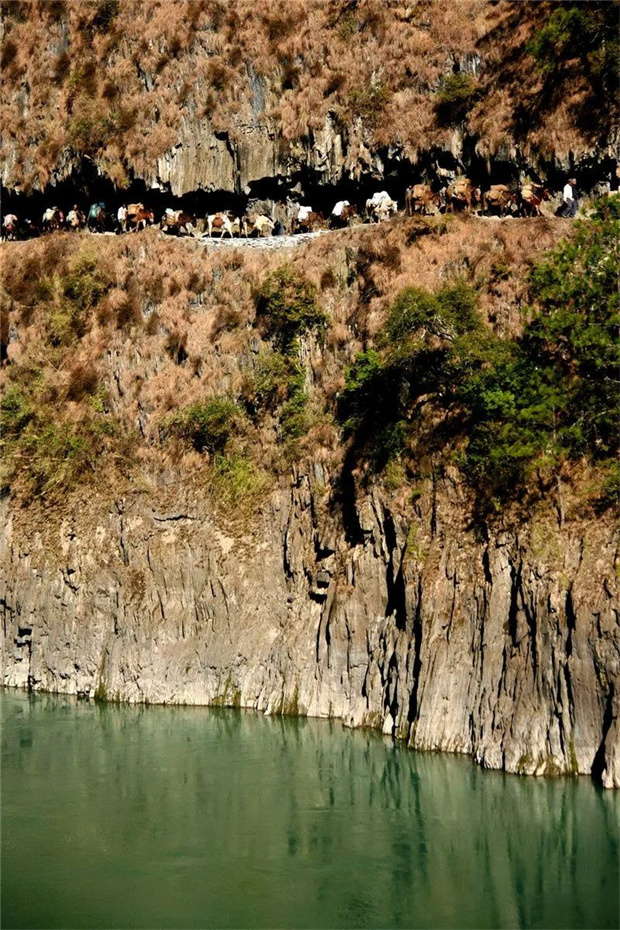,茶馬古道像是橫在碧羅雪山的千丈懸崖的一條細(xì)縫。踏上古道,最多兩人并排走過的古道一側(cè)是碧羅雪山的峭壁,一