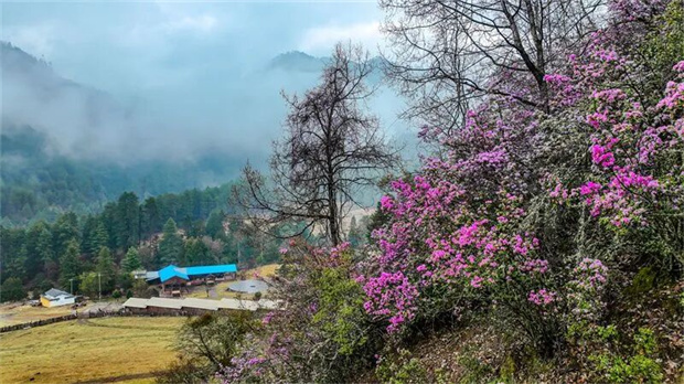 寸山野山間杜鵑次第綻放,漫山鋪展,粉紫嫣紅綴滿坡地與崖邊,將雄奇山巒暈染得溫柔詩(shī)意。