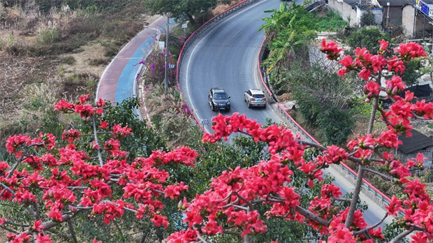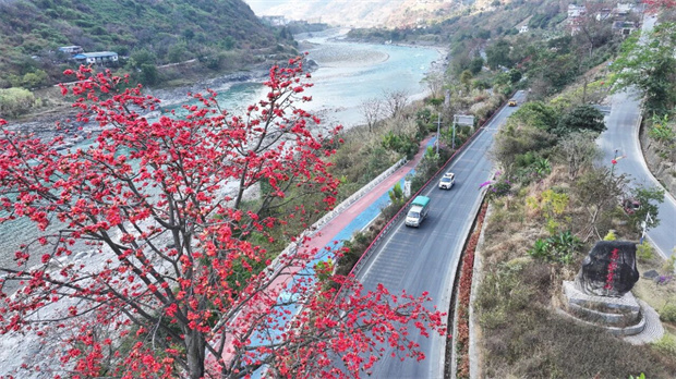 春風(fēng)拂過峽谷大地,近日,瀘水市街頭巷尾,熟悉的木棉花悄然綻放。一樹樹紅霞似火,鋪滿天際,將怒江的春日畫卷